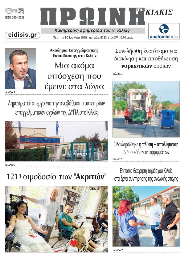 Διαβάστε το νέο πρωτοσέλιδο της Πρωινής του Κιλκίς, μοναδικής καθημερινής εφημερίδας του ν. Κιλκίς (10-7-2025)