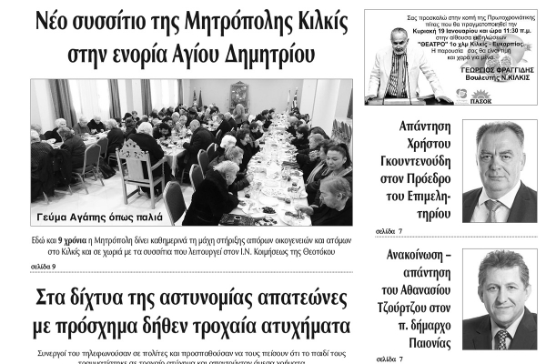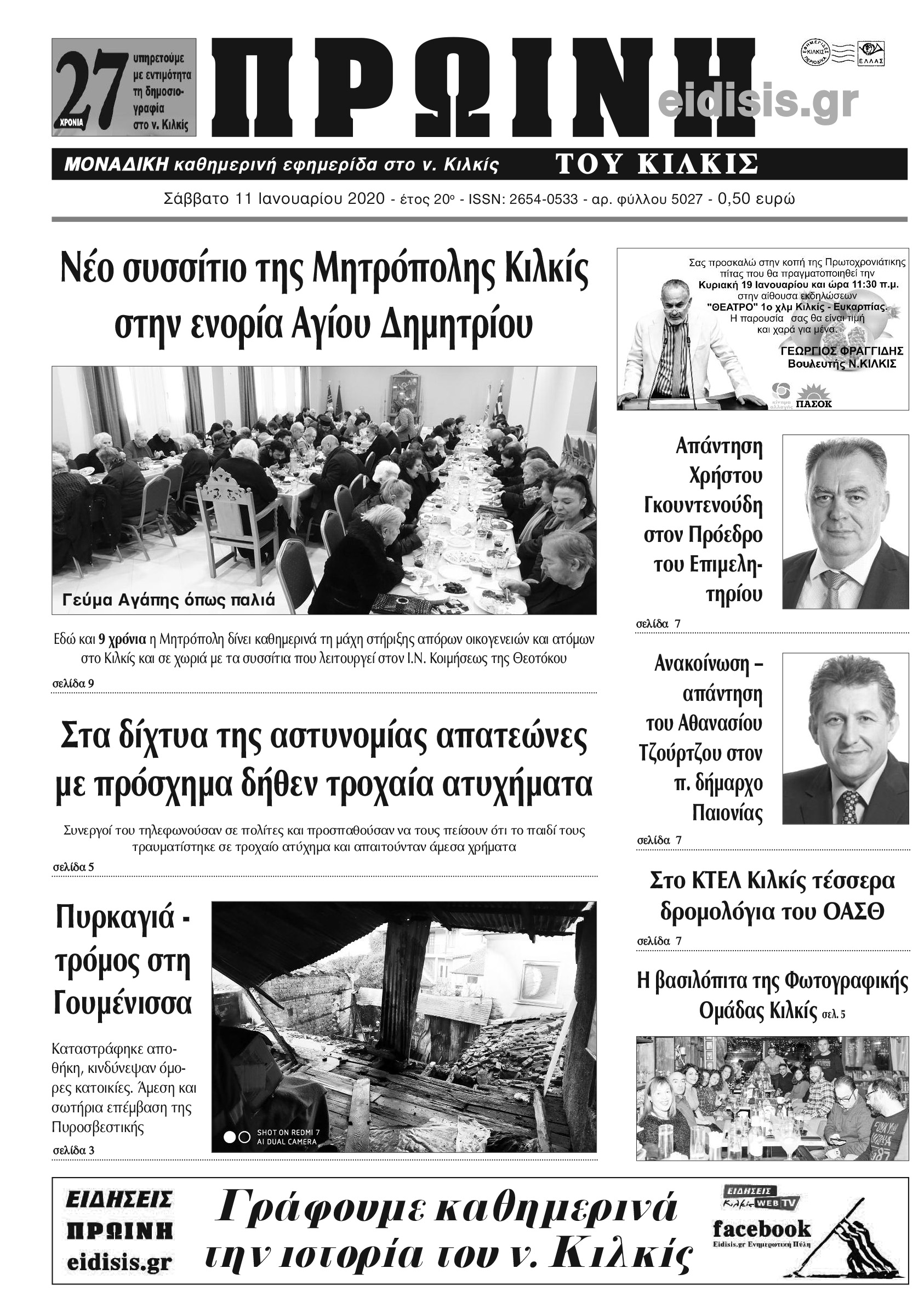 Διαβάστε το νέο πρωτοσέλιδο της Πρωινής του Κιλκίς, μοναδικής καθημερινής εφημερίδας του ν. Κιλκίς (11-1-2020)