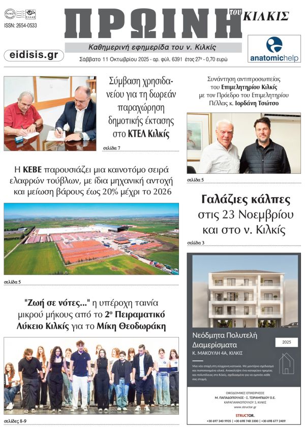 Διαβάστε το νέο πρωτοσέλιδο της Πρωινής του Κιλκίς, μοναδικής καθημερινής εφημερίδας του ν. Κιλκίς (11-10-2025)