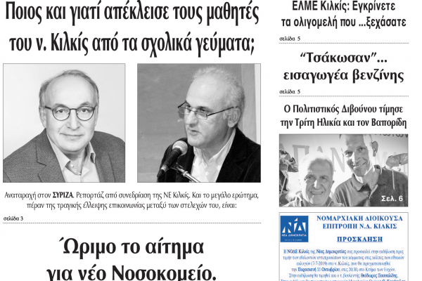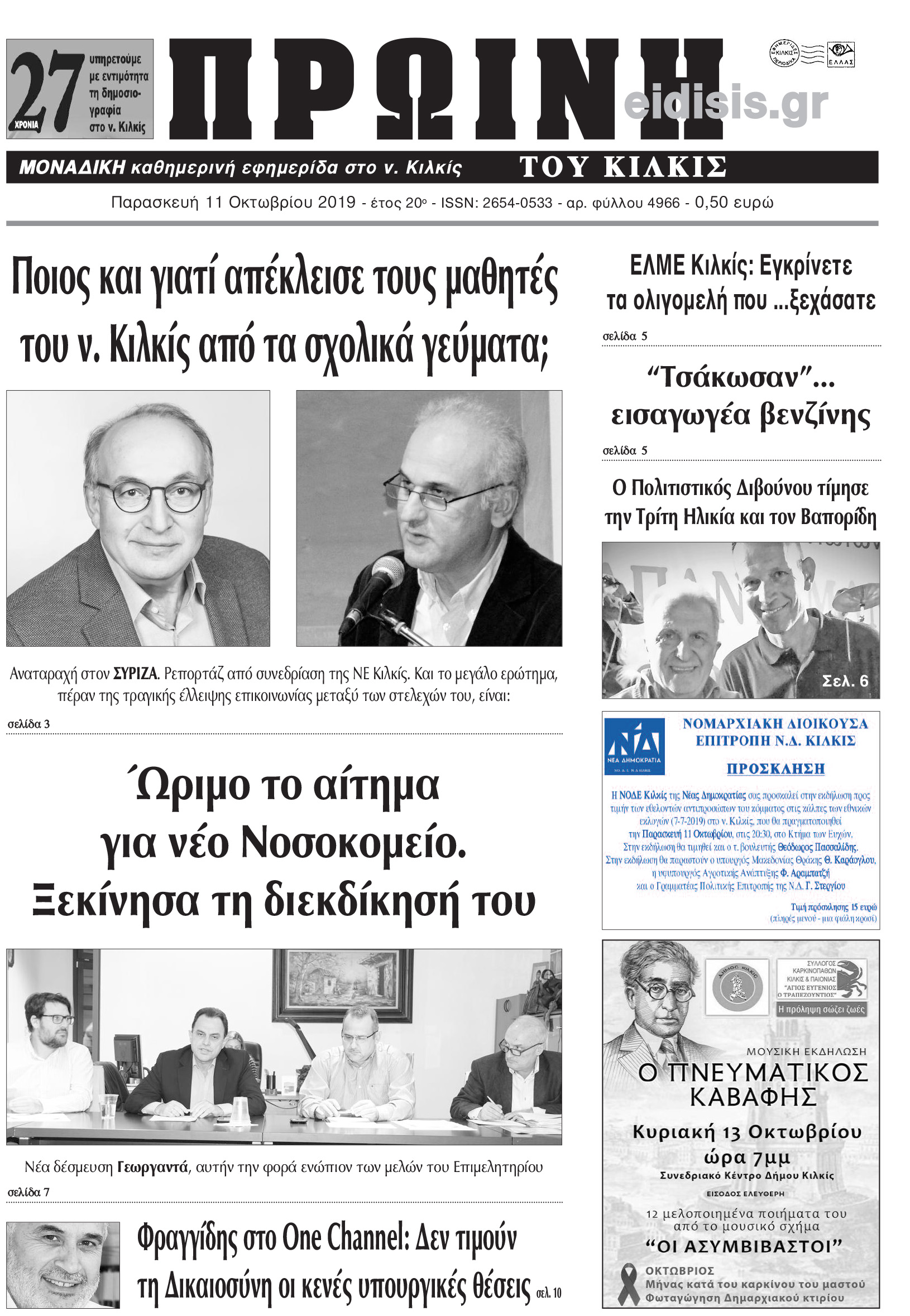 Διαβάστε το νέο πρωτοσέλιδο της Πρωινής του Κιλκίς, μοναδικής καθημερινής εφημερίδας του ν. Κιλκίς (11-10-2109)