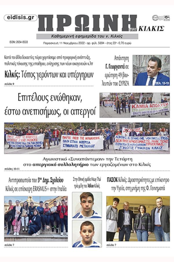 Διαβάστε το νέο πρωτοσέλιδο της Πρωινής του Κιλκίς, μοναδικής καθημερινής εφημερίδας του ν. Κιλκίς (11-11-2022)