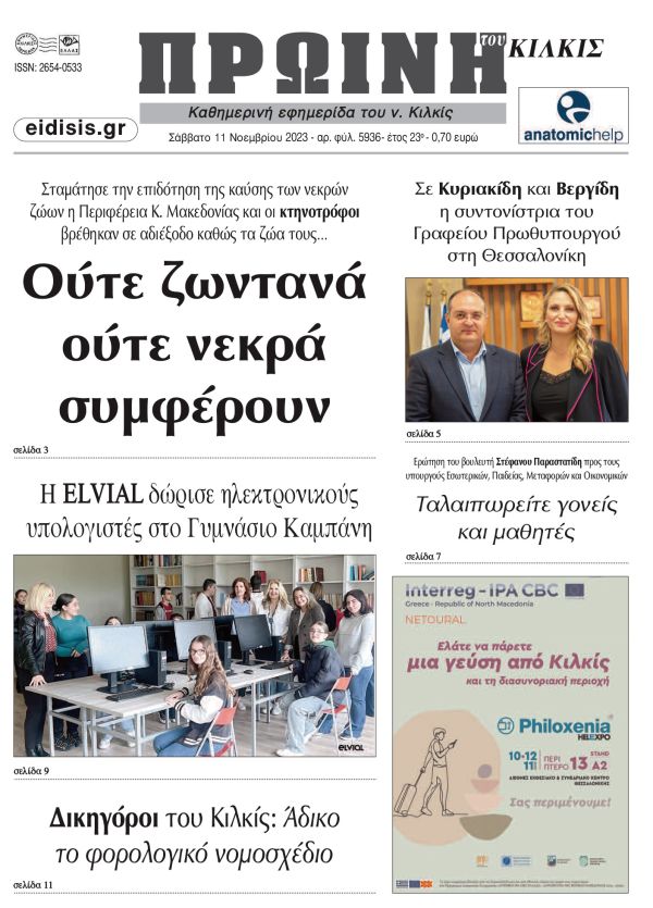 Διαβάστε το νέο πρωτοσέλιδο της Πρωινής του Κιλκίς, μοναδικής καθημερινής εφημερίδας του ν. Κιλκίς (11-11-2023)