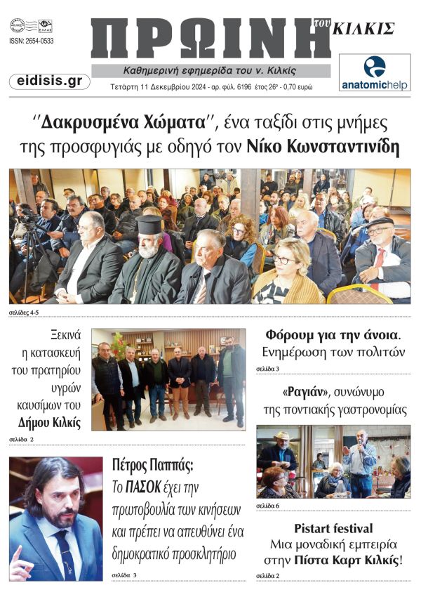 Διαβάστε το νέο πρωτοσέλιδο της Πρωινής του Κιλκίς, μοναδικής καθημερινής εφημερίδας του ν. Κιλκίς (11-12-2024)