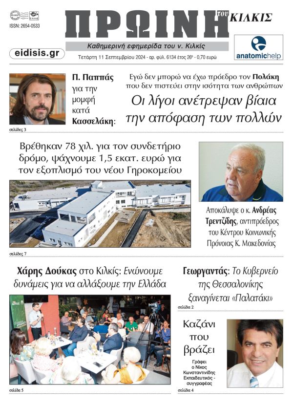 Διαβάστε το νέο πρωτοσέλιδο της Πρωινής του Κιλκίς, μοναδικής καθημερινής εφημερίδας του ν. Κιλκίς (11-9-2024)