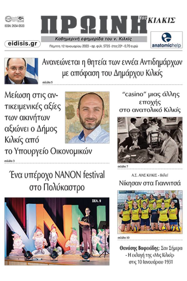 Διαβάστε το νέο πρωτοσέλιδο των ΕΙΔΗΣΕΩΝ του Κιλκίς, της εβδομαδιαίας εφημερίδας του ν. Κιλκίς (12-1-2023)