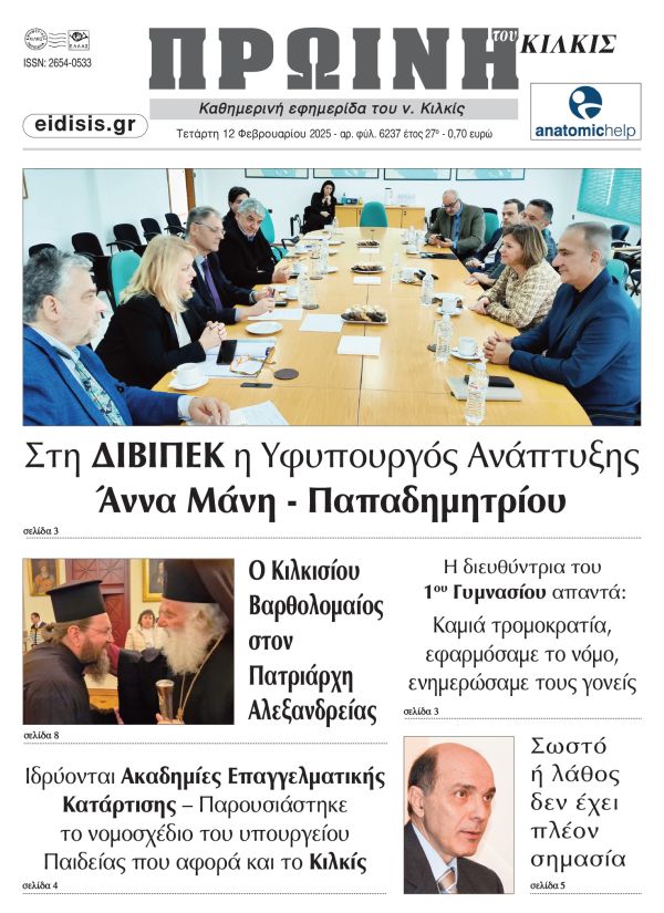 Διαβάστε το νέο πρωτοσέλιδο της Πρωινής του Κιλκίς, μοναδικής καθημερινής εφημερίδας του ν. Κιλκίς (12-2-2025)