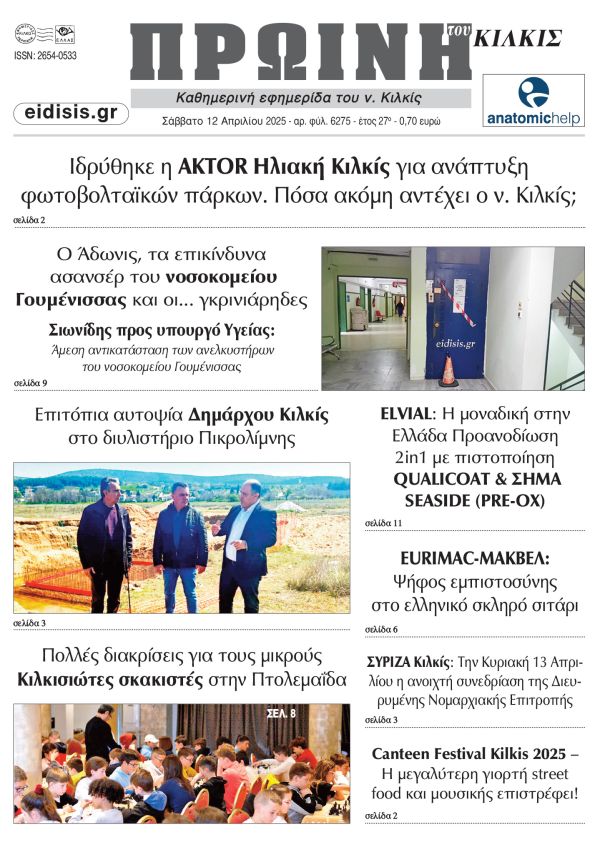 Διαβάστε το νέο πρωτοσέλιδο της Πρωινής του Κιλκίς, μοναδικής καθημερινής εφημερίδας του ν. Κιλκίς (12-4-2025)