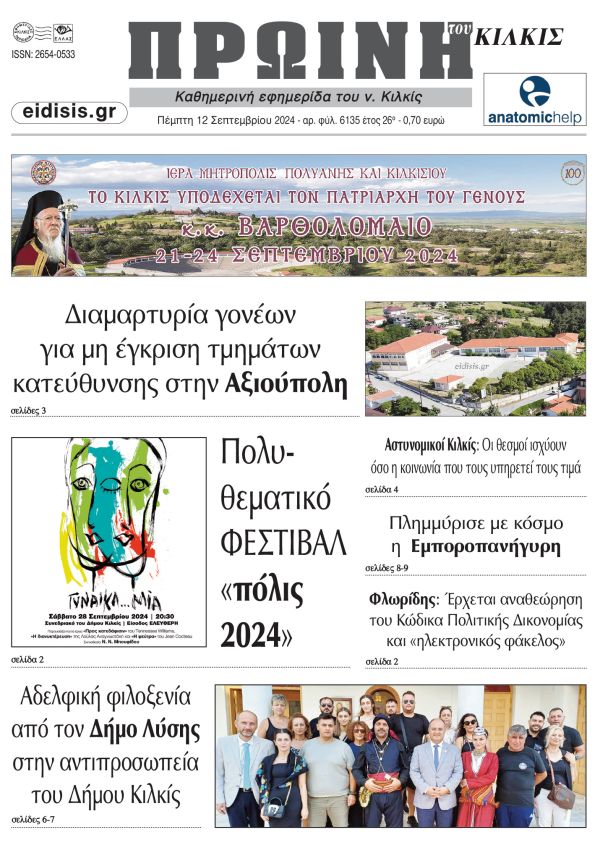 Διαβάστε το νέο πρωτοσέλιδο της Πρωινής του Κιλκίς, μοναδικής καθημερινής εφημερίδας του ν. Κιλκίς (12-9-2024)