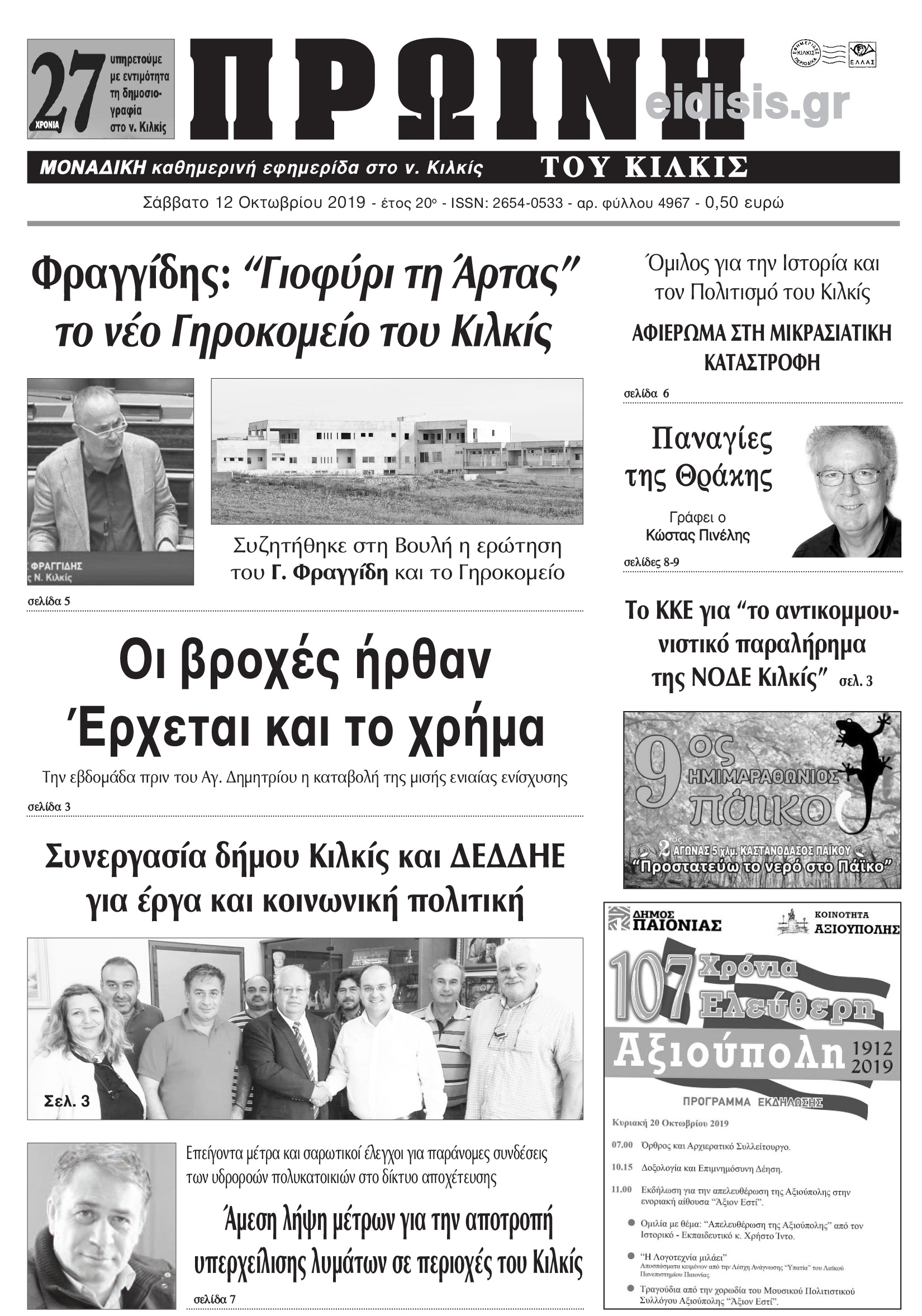 Διαβάστε το νέο πρωτοσέλιδο της Πρωινής του Κιλκίς, μοναδικής καθημερινής εφημερίδας του ν. Κιλκίς (13-10-2019)
