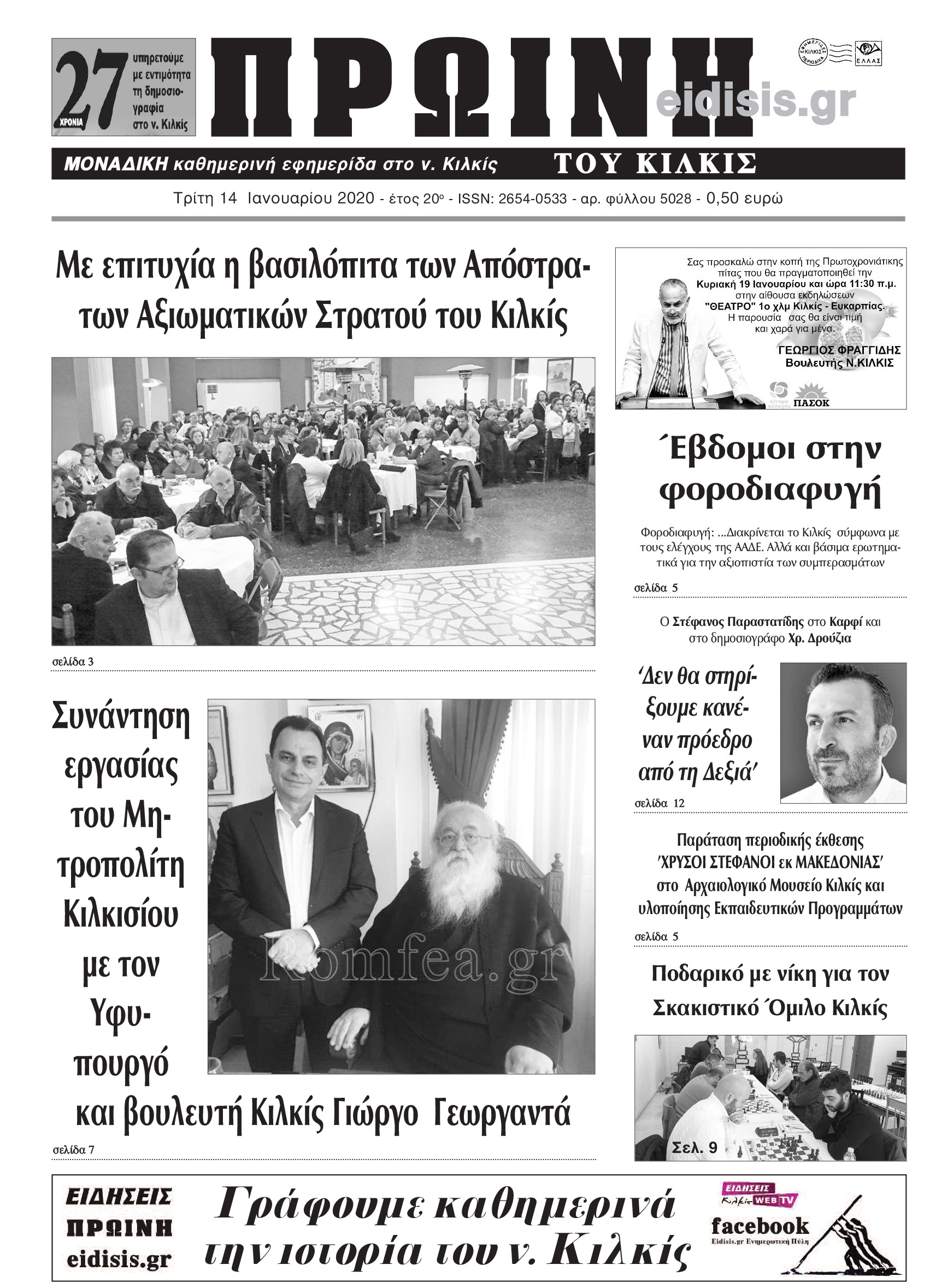 Διαβάστε το νέο πρωτοσέλιδο της Πρωινής του Κιλκίς, μοναδικής καθημερινής εφημερίδας του ν. Κιλκίς (14-1-2020)