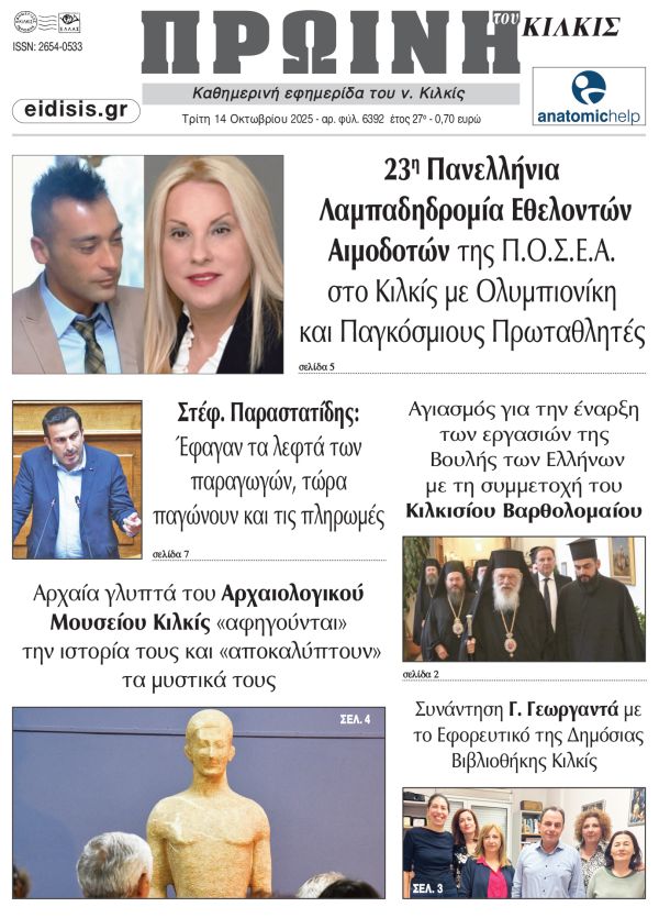 Διαβάστε το νέο πρωτοσέλιδο της Πρωινής του Κιλκίς, μοναδικής καθημερινής εφημερίδας του ν. Κιλκίς (14-10-2025)