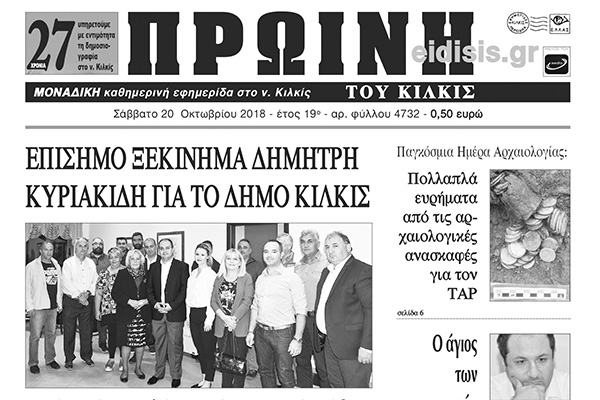 Διαβάστε το νέο πρωτοσέλιδο της Πρωινής του Κιλκίς, μοναδικής καθημερινής εφημερίδας του ν. Κιλκίς
