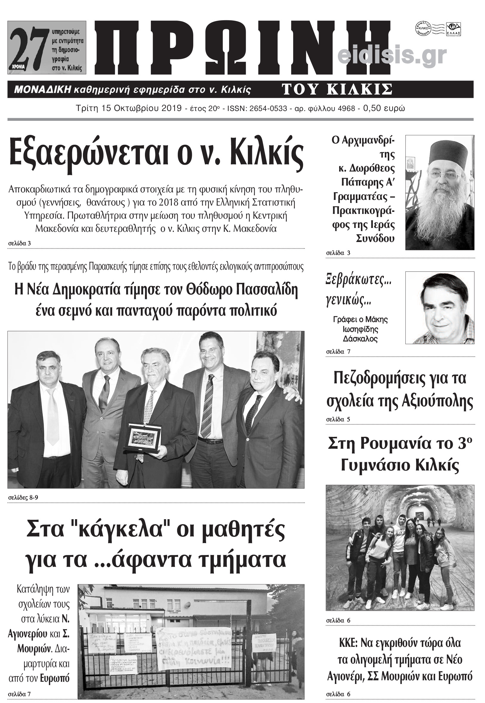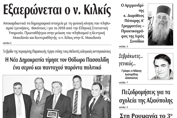 Διαβάστε το νέο πρωτοσέλιδο της Πρωινής του Κιλκίς, μοναδικής καθημερινής εφημερίδας του ν. Κιλκίς (15-10-2019)