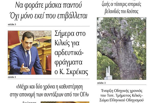 Διαβάστε το νέο πρωτοσέλιδο της Πρωινής του Κιλκίς, μοναδικής καθημερινής εφημερίδας του ν. Κιλκίς (15-10-2020)