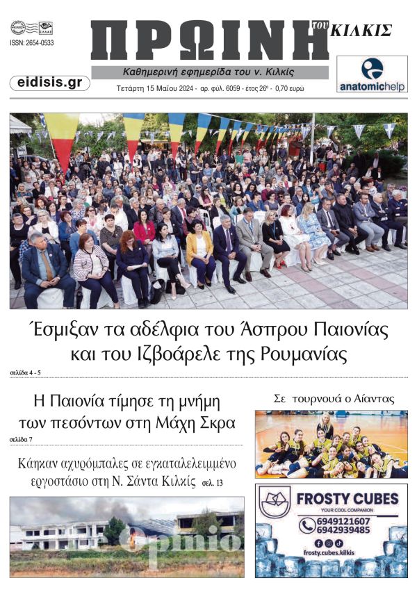 Διαβάστε το νέο πρωτοσέλιδο της Πρωινής του Κιλκίς, μοναδικής καθημερινής εφημερίδας του ν. Κιλκίς (15-5-2024)