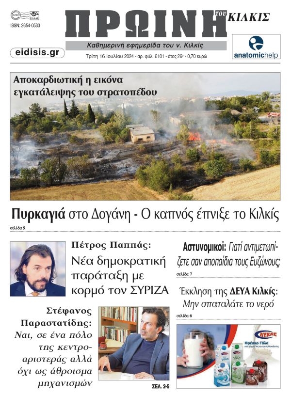Διαβάστε το νέο πρωτοσέλιδο της Πρωινής του Κιλκίς, μοναδικής καθημερινής εφημερίδας του ν. Κιλκίς (16-7-2024)