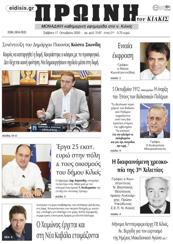 Διαβάστε το νέο πρωτοσέλιδο της Πρωινής του Κιλκίς, μοναδικής καθημερινής εφημερίδας του ν. Κιλκίς (17-10-2025)