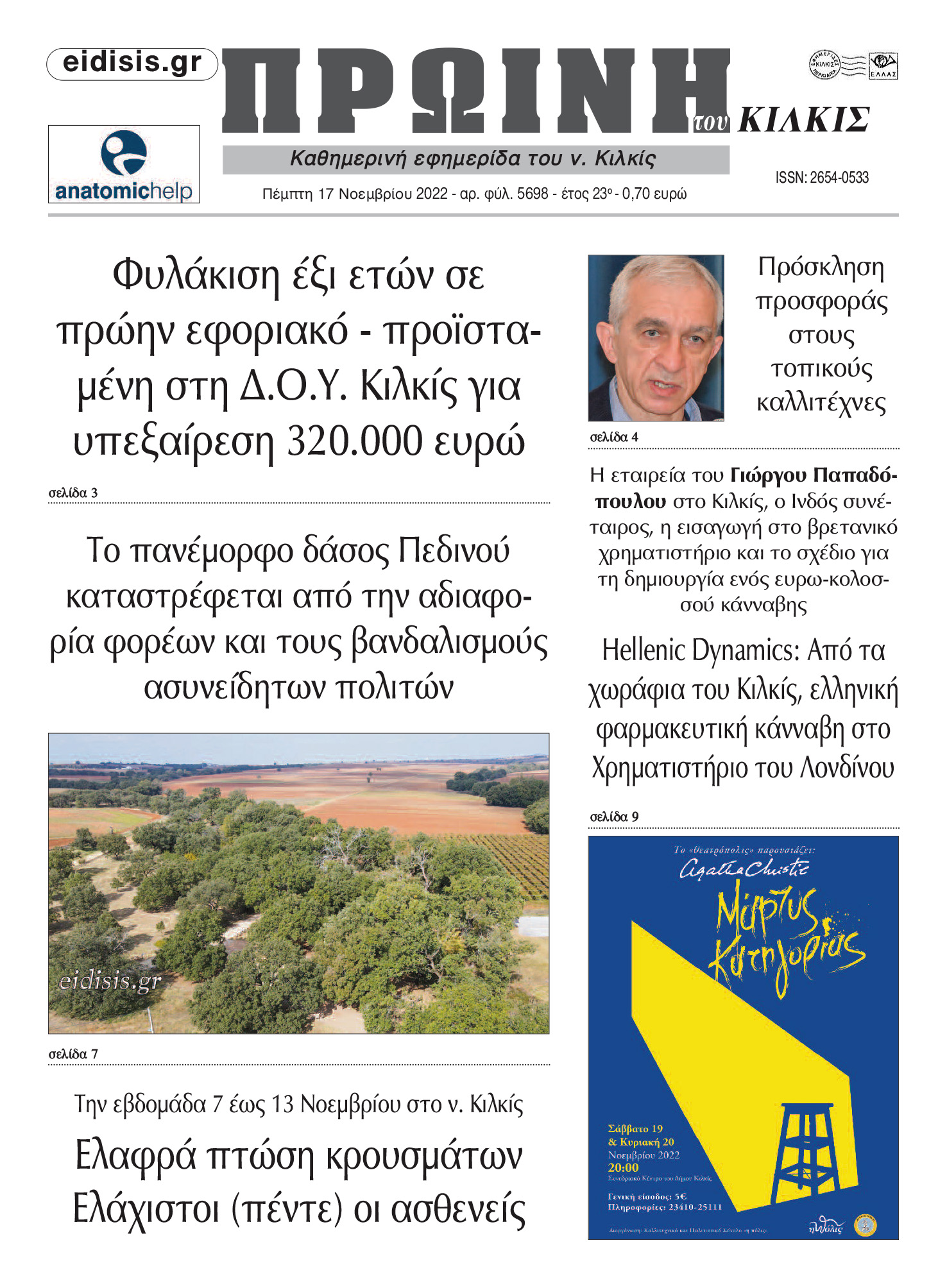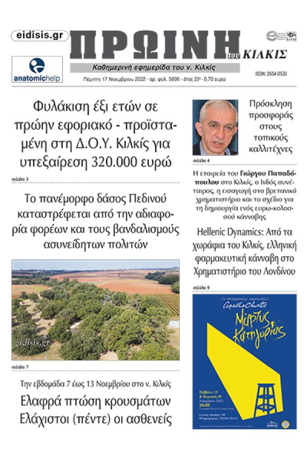 Διαβάστε το νέο πρωτοσέλιδο της Πρωινής του Κιλκίς, μοναδικής καθημερινής εφημερίδας του ν. Κιλκίς (17-11-2022)