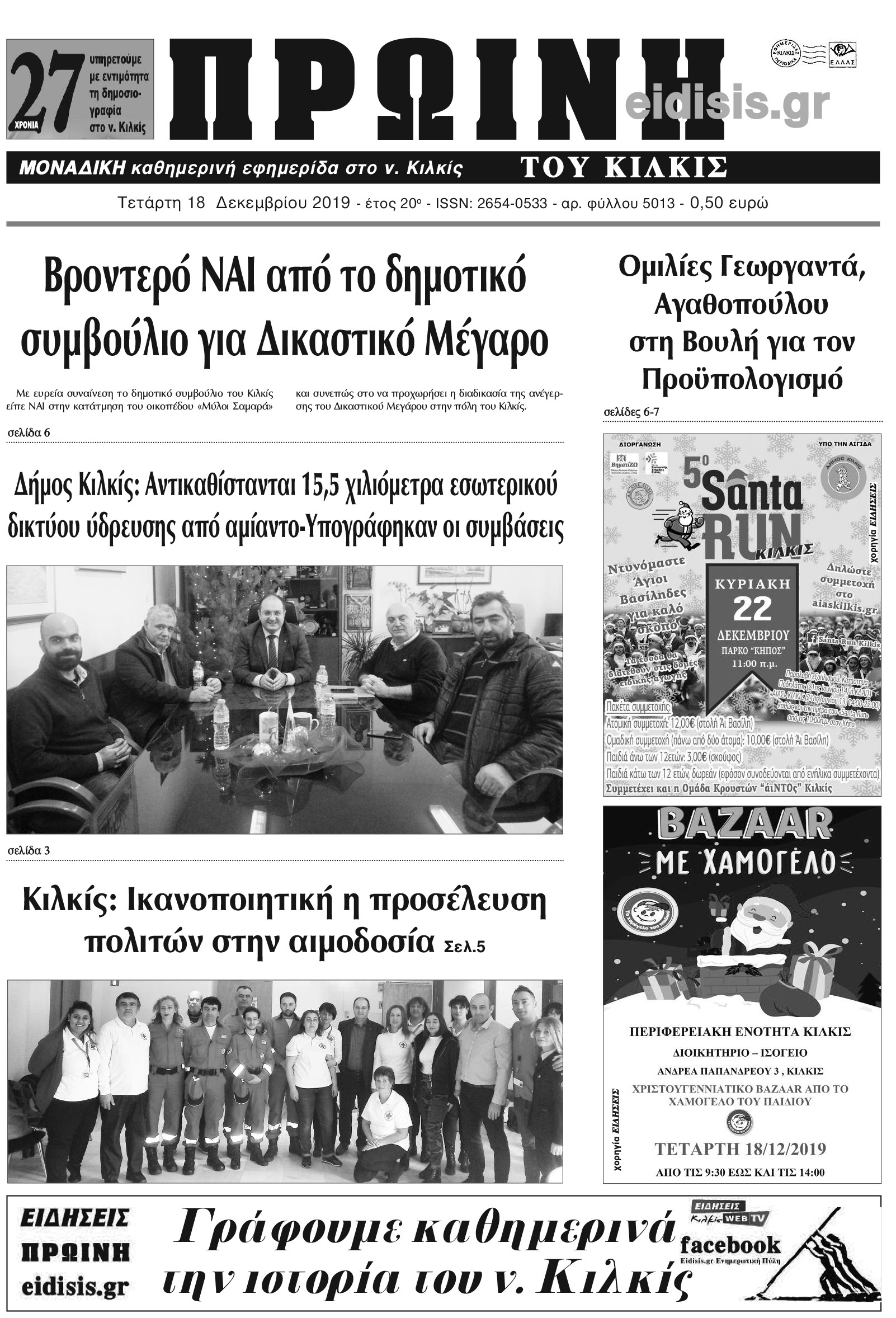 Διαβάστε το νέο πρωτοσέλιδο της Πρωινής του Κιλκίς, μοναδικής καθημερινής εφημερίδας του ν. Κιλκίς (18-12-2019)
