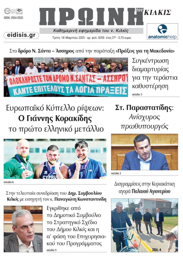Διαβάστε το νέο πρωτοσέλιδο της Πρωινής του Κιλκίς, μοναδικής καθημερινής εφημερίδας του ν. Κιλκίς (18-3-2025)
