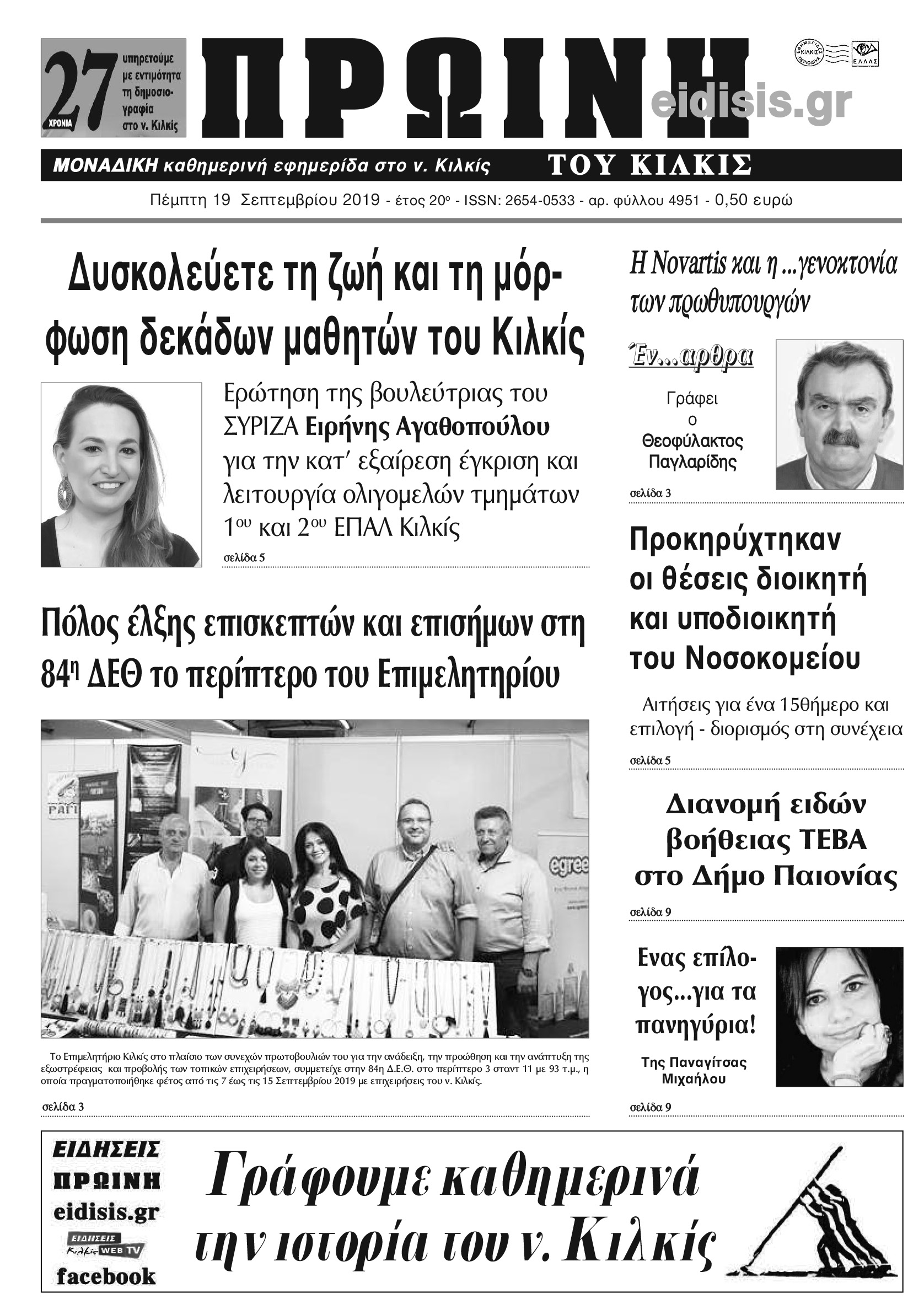 Διαβάστε το νέο πρωτοσέλιδο της Πρωινής του Κιλκίς, μοναδικής καθημερινής εφημερίδας του ν. Κιλκίς (19-9-2019)