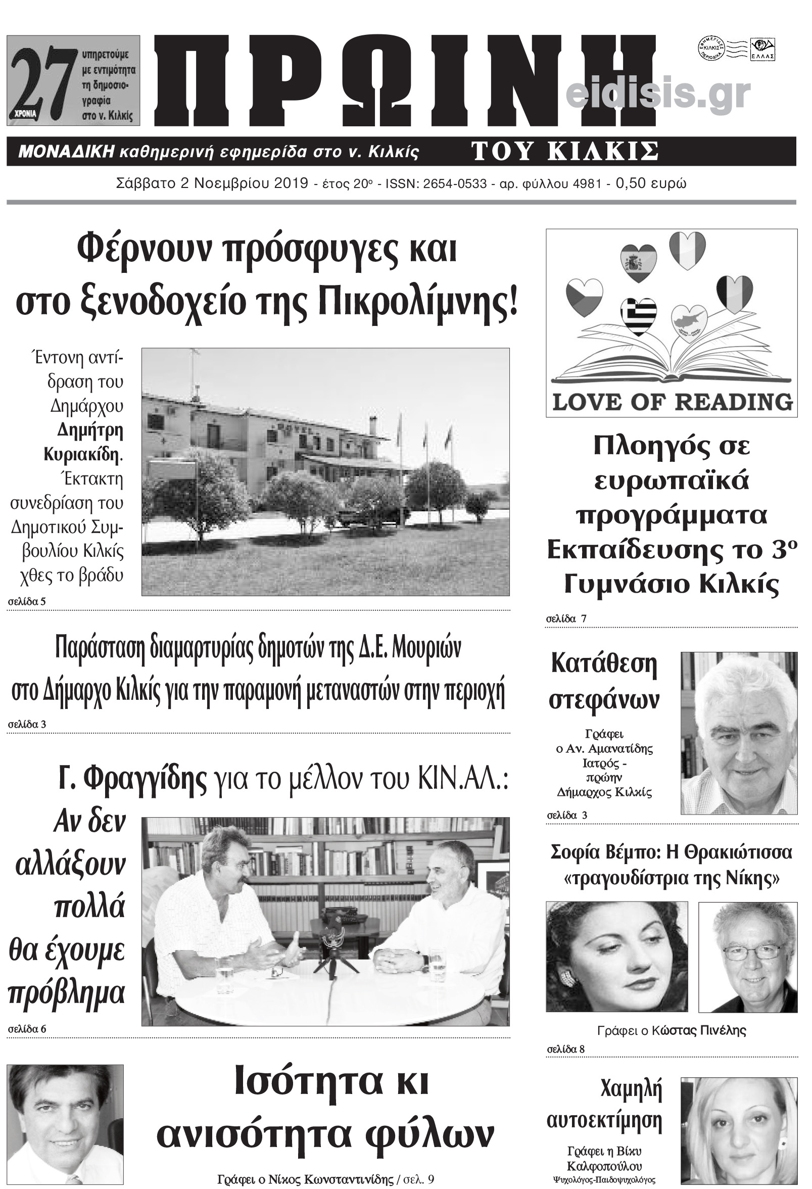 Διαβάστε το νέο πρωτοσέλιδο της Πρωινής του Κιλκίς, μοναδικής καθημερινής εφημερίδας του ν. Κιλκίς (2-11-2019)