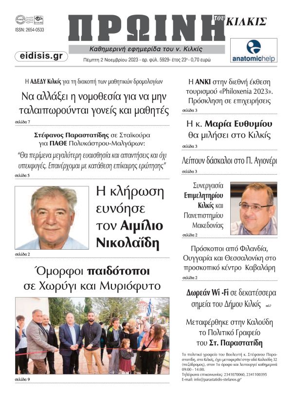 Διαβάστε το νέο πρωτοσέλιδο της ΠΡΩΙΝΗΣ του Κιλκίς, μοναδικής καθημερινής εφημερίδας του ν. Κιλκίς (2-11-2023)