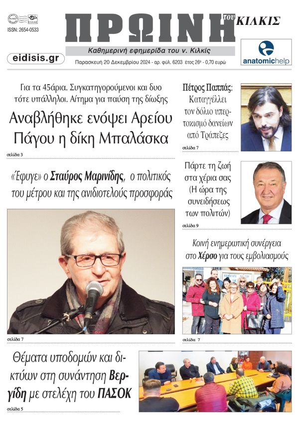 Διαβάστε το νέο πρωτοσέλιδο της Πρωινής του Κιλκίς, μοναδικής καθημερινής εφημερίδας του ν. Κιλκίς (20-12-2024)