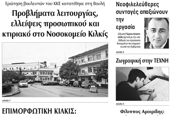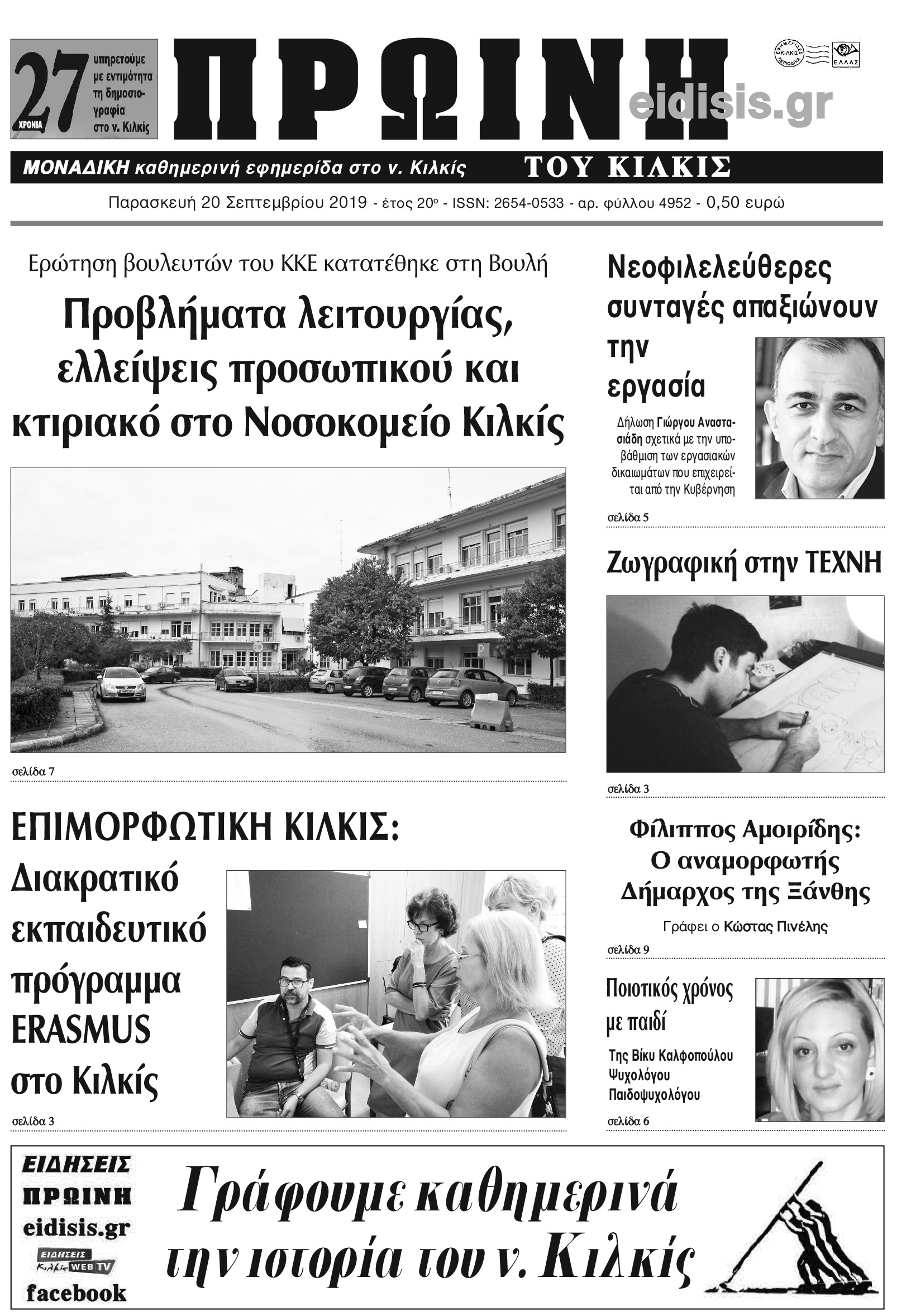 Διαβάστε το νέο πρωτοσέλιδο της Πρωινής του Κιλκίς, μοναδικής καθημερινής εφημερίδας του ν. Κιλκίς (20-9-2109)