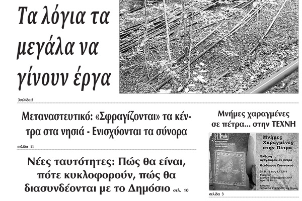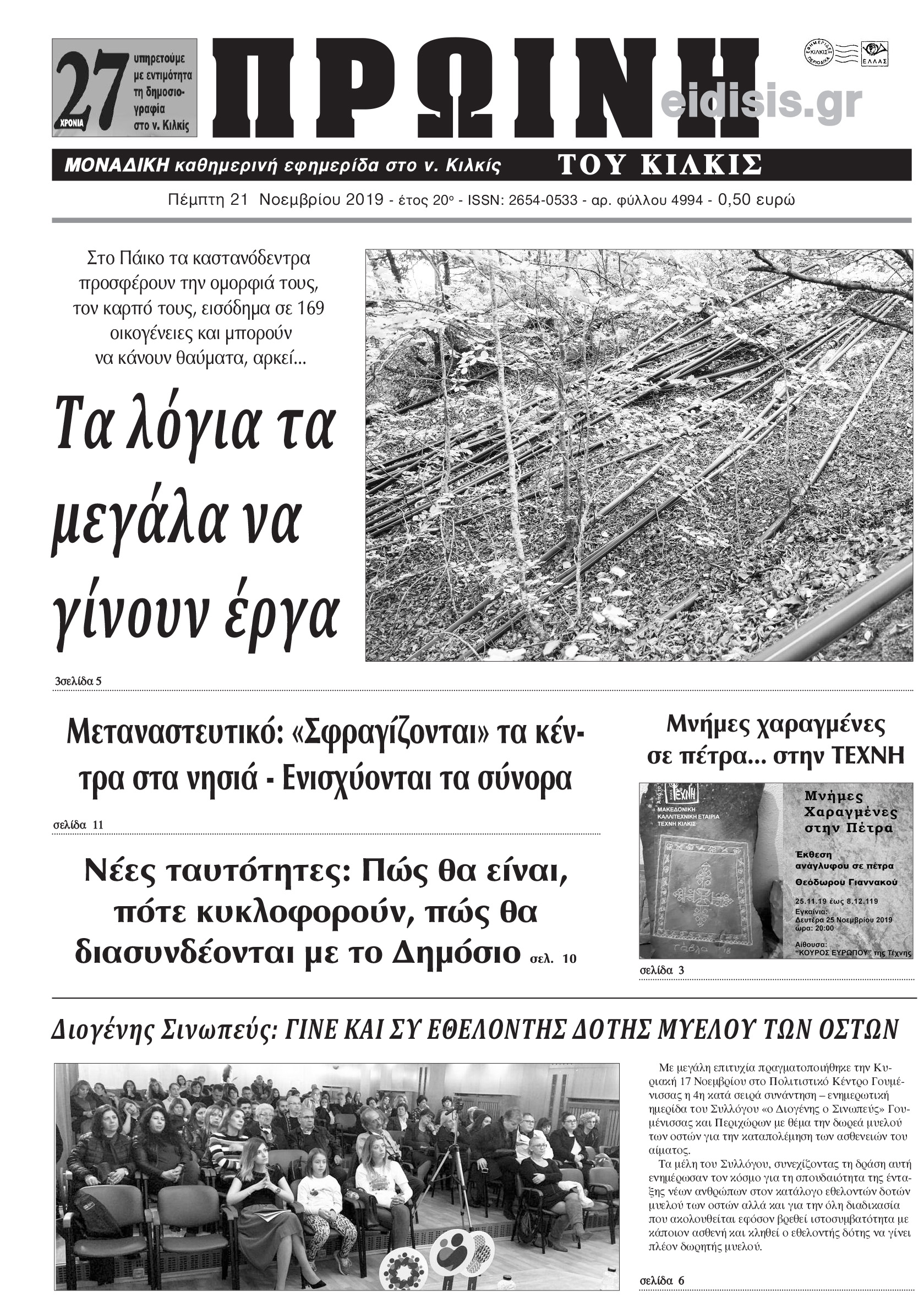 Διαβάστε το νέο πρωτοσέλιδο της Πρωινής του Κιλκίς, μοναδικής καθημερινής εφημερίδας του ν. Κιλκίς (21-11-2019)
