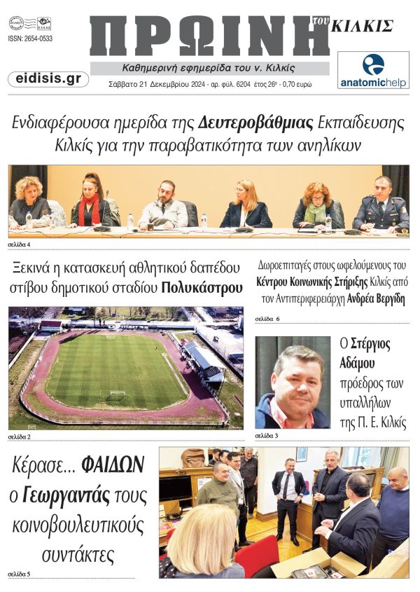 Διαβάστε το νέο πρωτοσέλιδο της Πρωινής του Κιλκίς, μοναδικής καθημερινής εφημερίδας του ν. Κιλκίς (21-12-2024)