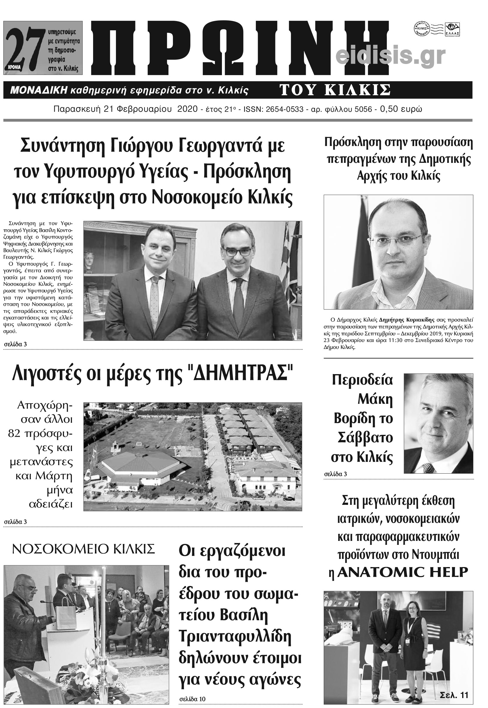 Διαβάστε το νέο πρωτοσέλιδο της Πρωινής του Κιλκίς, μοναδικής καθημερινής εφημερίδας του ν. Κιλκίς (21-2-2020)