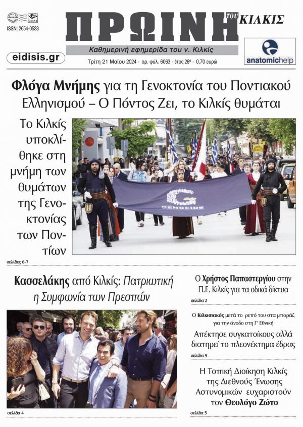 Διαβάστε το νέο πρωτοσέλιδο της Πρωινής του Κιλκίς, μοναδικής καθημερινής εφημερίδας του ν. Κιλκίς (21-5-2024)