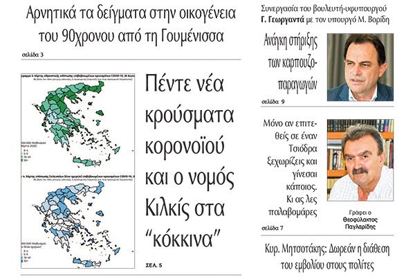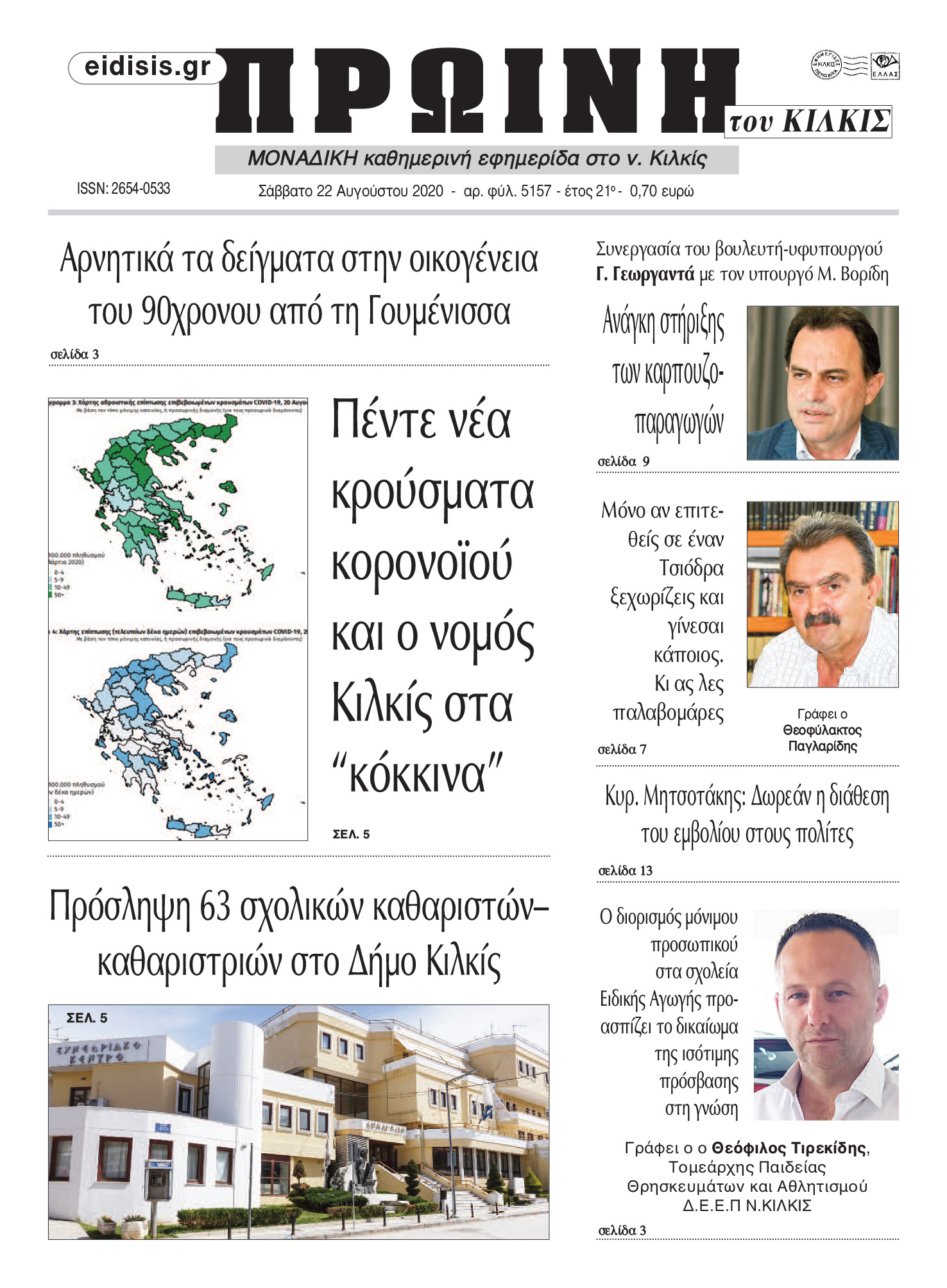 Διαβάστε το νέο πρωτοσέλιδο της Πρωινής του Κιλκίς, μοναδικής καθημερινής εφημερίδας του ν. Κιλκίς (22-8-2020)