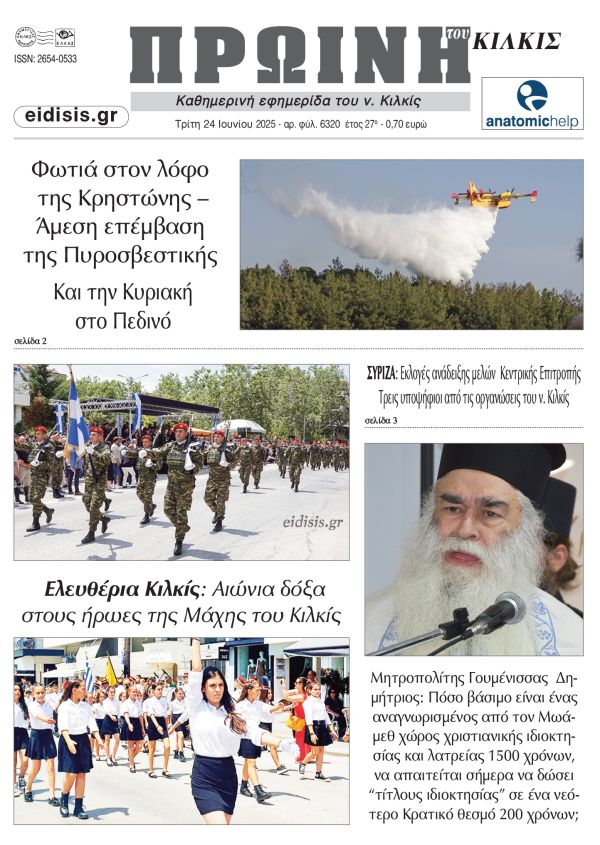 Διαβάστε το νέο πρωτοσέλιδο της Πρωινής του Κιλκίς, μοναδικής καθημερινής εφημερίδας του ν. Κιλκίς (24-6-2025)