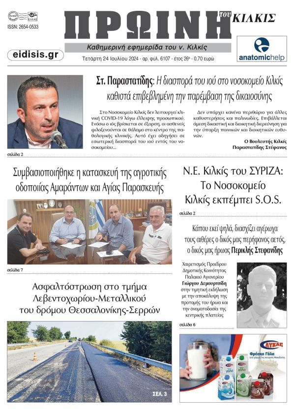 Διαβάστε το νέο πρωτοσέλιδο της ΠΡΩΙΝΗΣ του Κιλκίς, μοναδικής καθημερινής εφημερίδας του ν. Κιλκίς (24-7-2024)