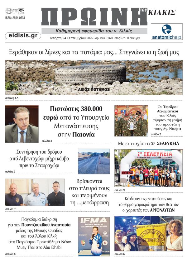 Διαβάστε το νέο πρωτοσέλιδο της Πρωινής του Κιλκίς, μοναδικής καθημερινής εφημερίδας του ν. Κιλκίς (24-9-2025)