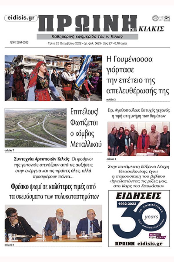Διαβάστε το νέο πρωτοσέλιδο της Πρωινής του Κιλκίς, μοναδικής καθημερινής εφημερίδας του ν. Κιλκίς (25-10-2022)
