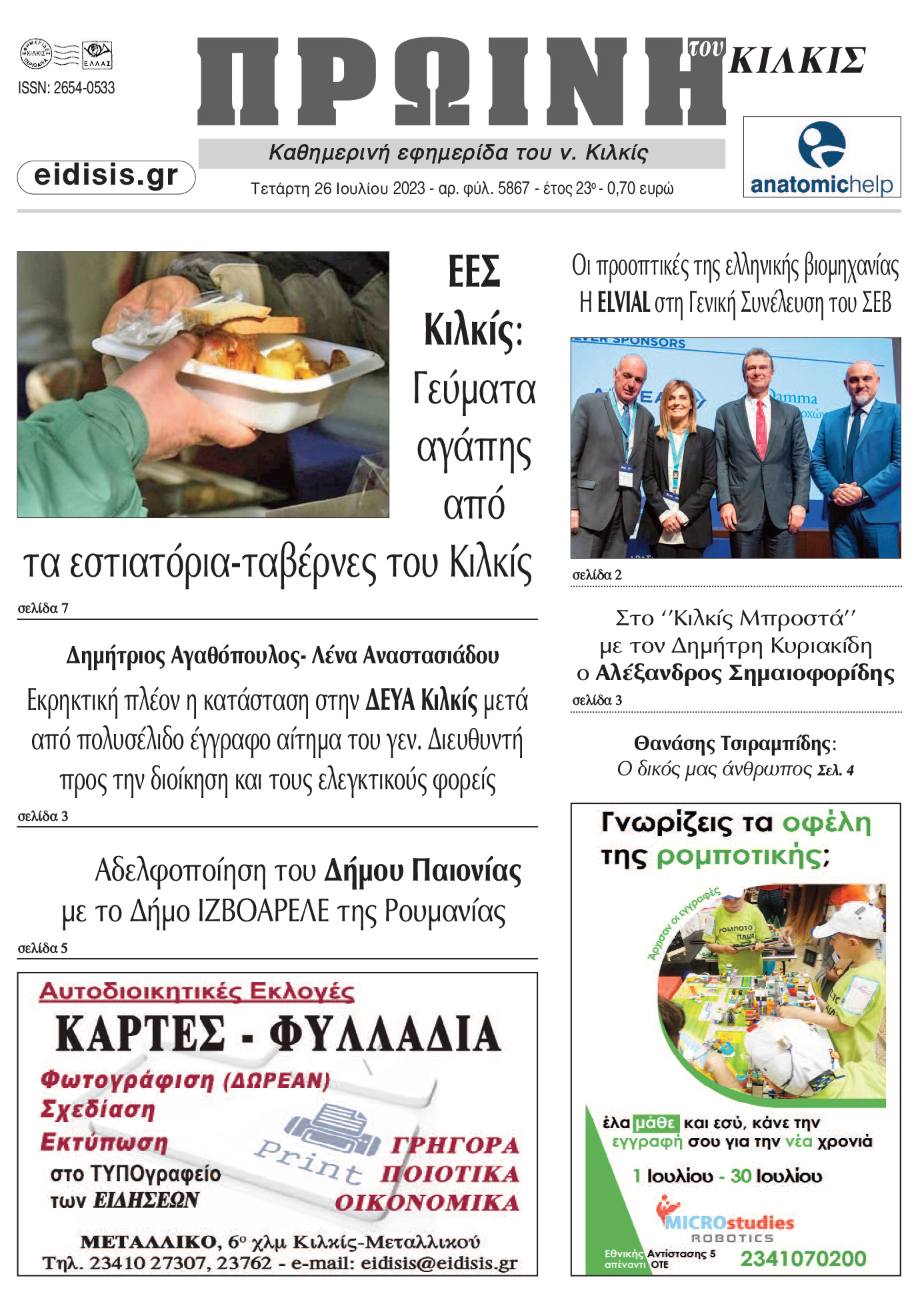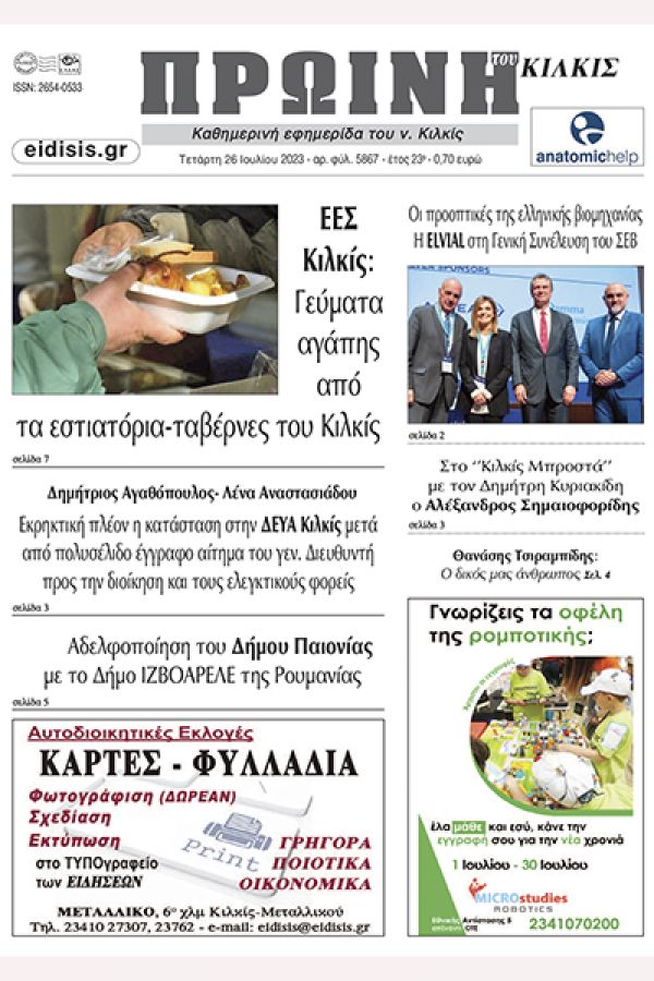 Διαβάστε το νέο πρωτοσέλιδο της Πρωινής του Κιλκίς, μοναδικής καθημερινής εφημερίδας του ν. Κιλκίς (26-7-2023)