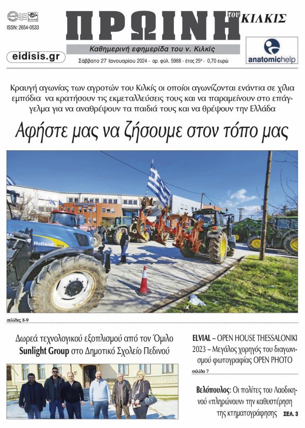 Διαβάστε το νέο πρωτοσέλιδο της Πρωινής του Κιλκίς, μοναδικής καθημερινής εφημερίδας του ν. Κιλκίς (27-1-2024)