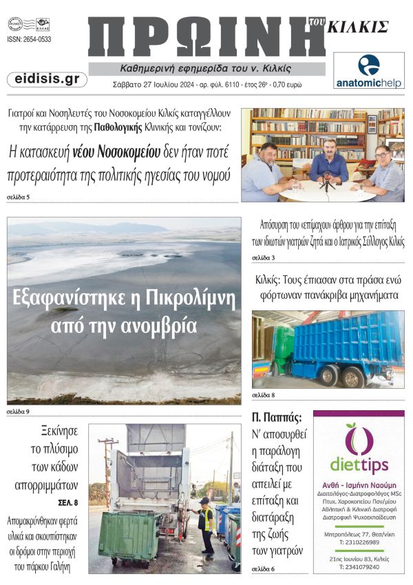 Διαβάστε το νέο πρωτοσέλιδο της Πρωινής του Κιλκίς, μοναδικής καθημερινής εφημερίδας του ν. Κιλκίς (27-7-2024)