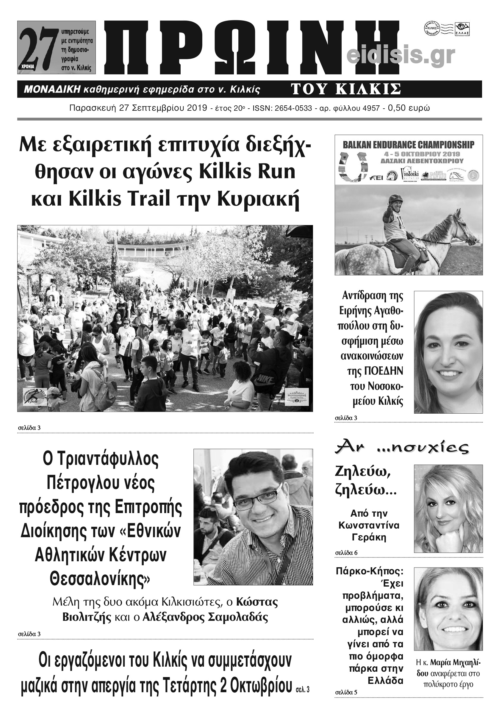 Διαβάστε το νέο πρωτοσέλιδο της Πρωινής του Κιλκίς, μοναδικής καθημερινής εφημερίδας του ν. Κιλκίς (27-9-2019)