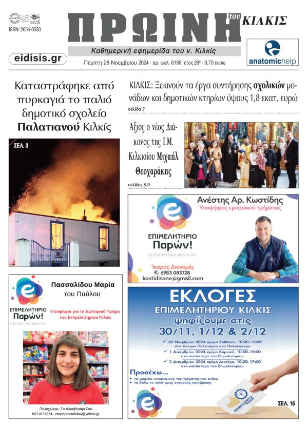 Διαβάστε το νέο πρωτοσέλιδο της Πρωινής του Κιλκίς, μοναδικής καθημερινής εφημερίδας του ν. Κιλκίς (28-11-2024)