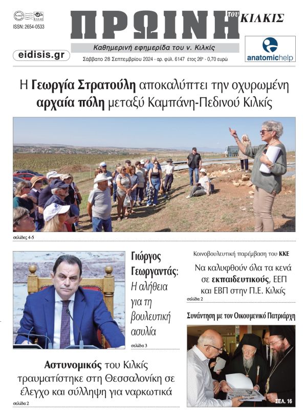 Διαβάστε το νέο πρωτοσέλιδο της Πρωινής του Κιλκίς, μοναδικής καθημερινής εφημερίδας του ν. Κιλκίς (28-9-2024)