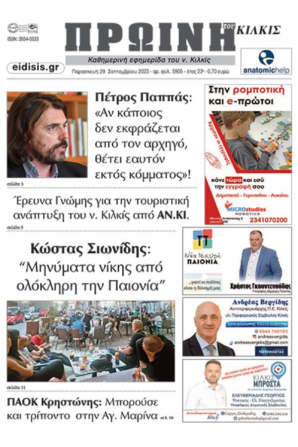 Διαβάστε το νέο πρωτοσέλιδο της Πρωινής του Κιλκίς, μοναδικής καθημερινής εφημερίδας του ν. Κιλκίς (29-9-2023)