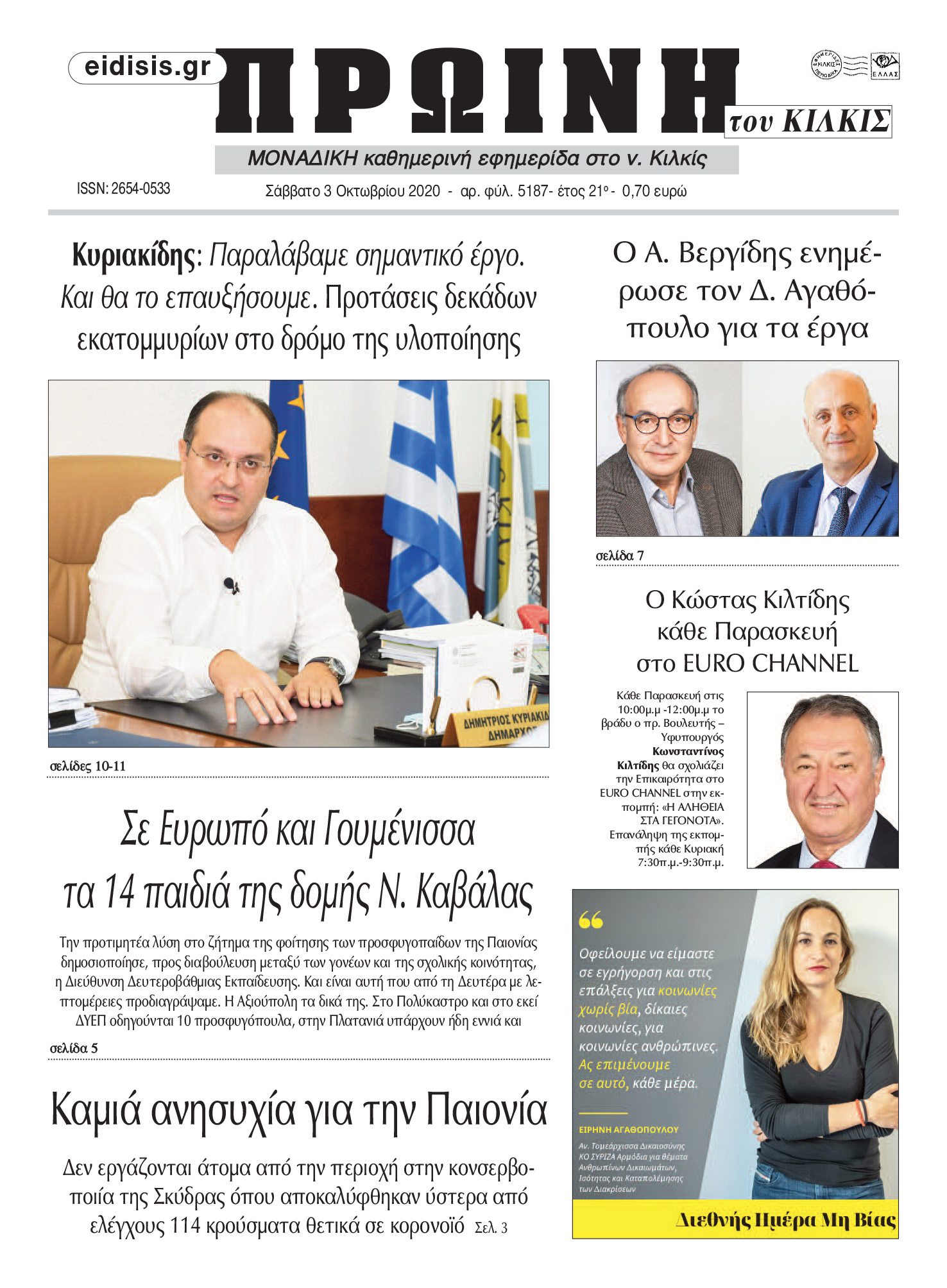 Διαβάστε το νέο πρωτοσέλιδο της Πρωινής του Κιλκίς, μοναδικής καθημερινής εφημερίδας του ν. Κιλκίς (3-10-2020)