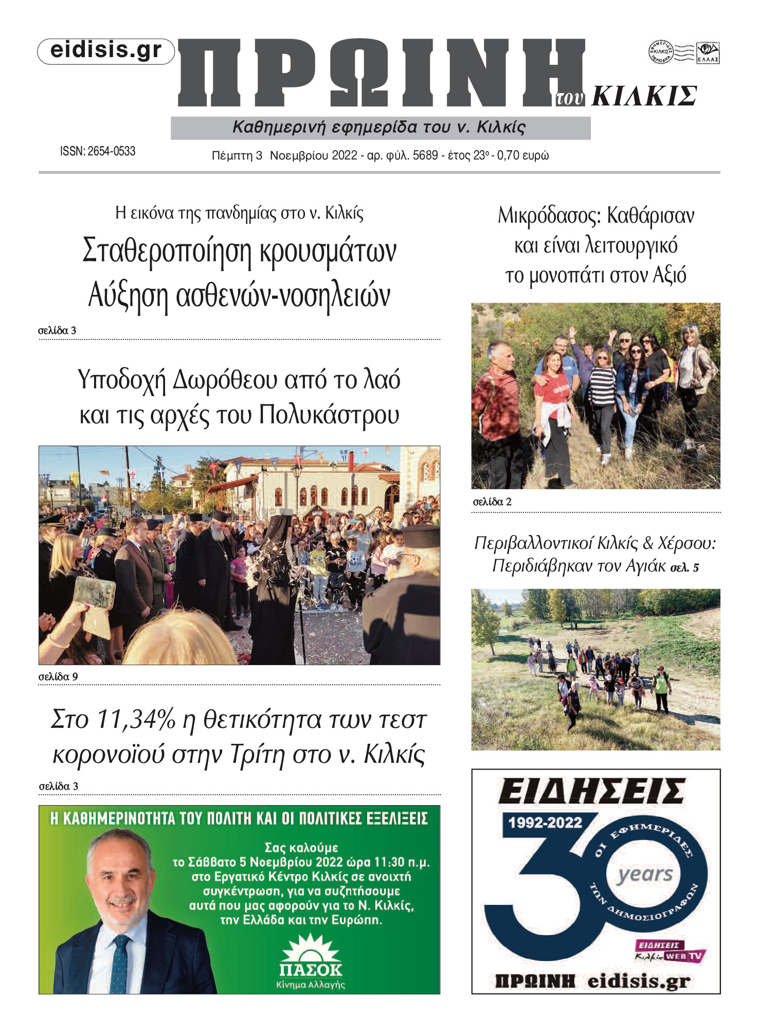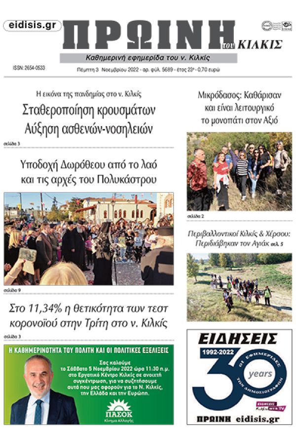 Διαβάστε το νέο πρωτοσέλιδο της Πρωινής του Κιλκίς, μοναδικής καθημερινής εφημερίδας του ν. Κιλκίς 3-11-2022)