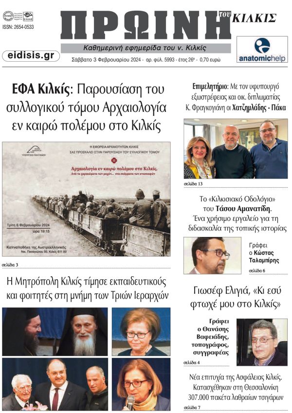 Διαβάστε το νέο πρωτοσέλιδο της Πρωινής του Κιλκίς, μοναδικής καθημερινής εφημερίδας του ν. Κιλκίς (3-2-2024)