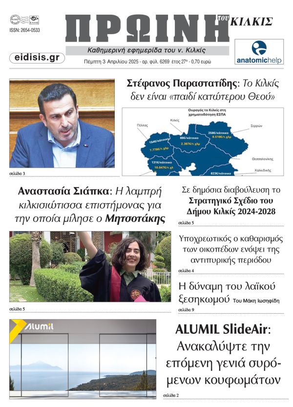 Διαβάστε το νέο πρωτοσέλιδο της Πρωινής του Κιλκίς, μοναδικής καθημερινής εφημερίδας του ν. Κιλκίς (3-4-2025)