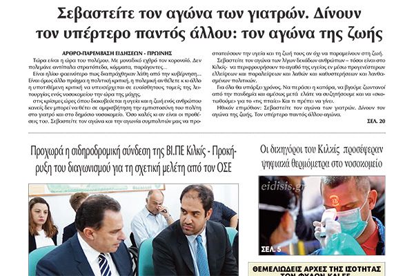 Διαβάστε το νέο πρωτοσέλιδο της Πρωινής του Κιλκίς, μοναδικής καθημερινής εφημερίδας του ν. Κιλκίς (4-12-2020)